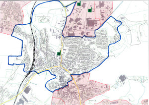Kortet viser i store træk Hobro Varmeværks Forsyningsområde der er afgrænset med en blå streg. Kontakt os, hvis du søger specifikke oplysninger. Øvrige områder er forsynet med gas. De røde områder er planlagt at overgå til fjernvarmeforsyning.