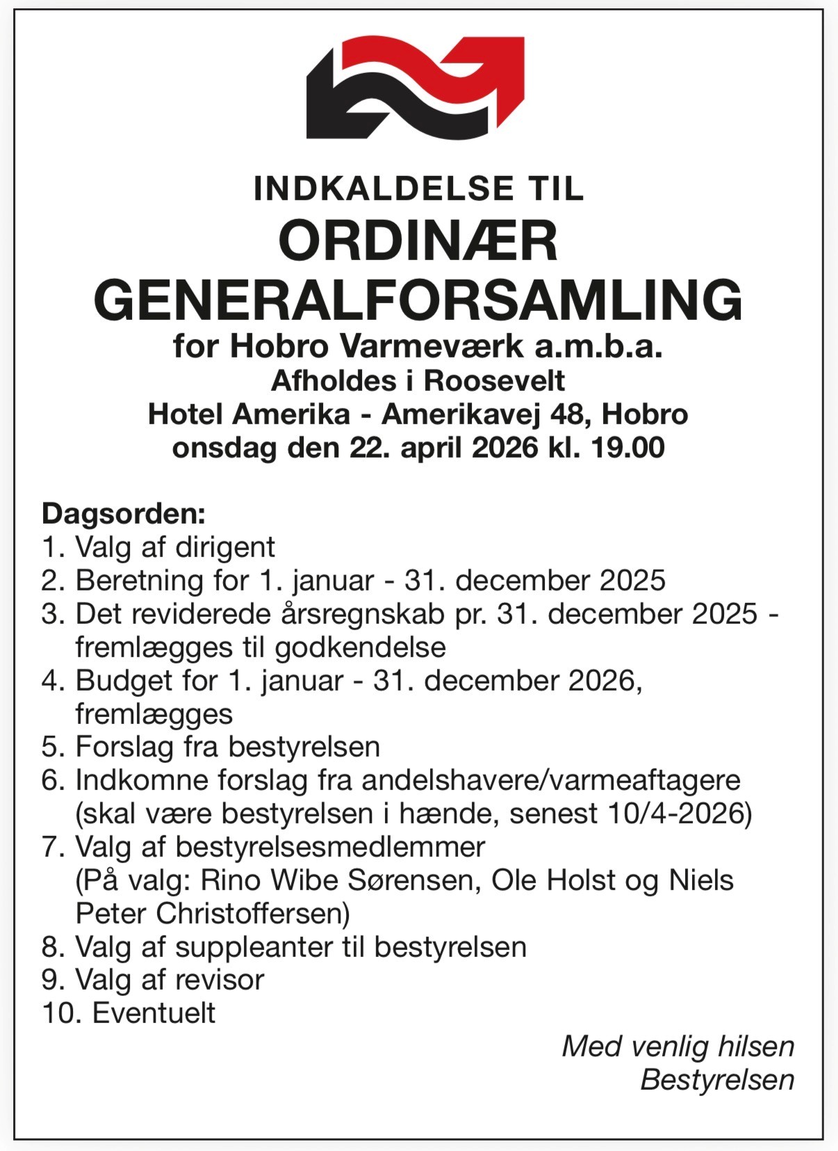 Indkaldelse til ordinær generalforsamling den 22. april 2026